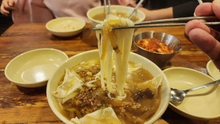 국수는 탱탱한 것은 아니고 부드러운 국수다.
