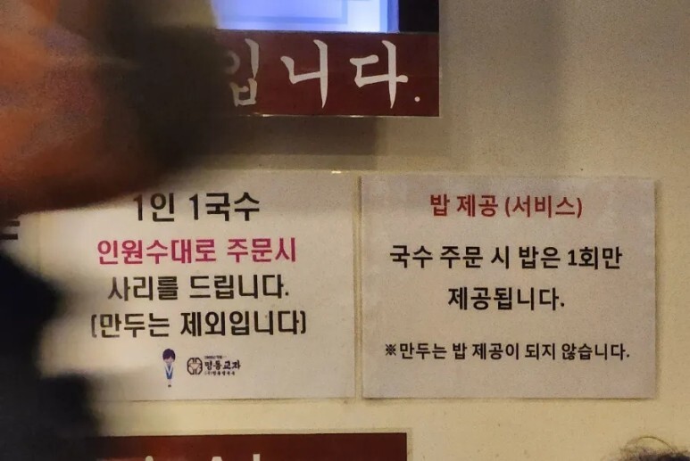 1인 1메뉴를 주문했다면 사리를 제공해 준다.