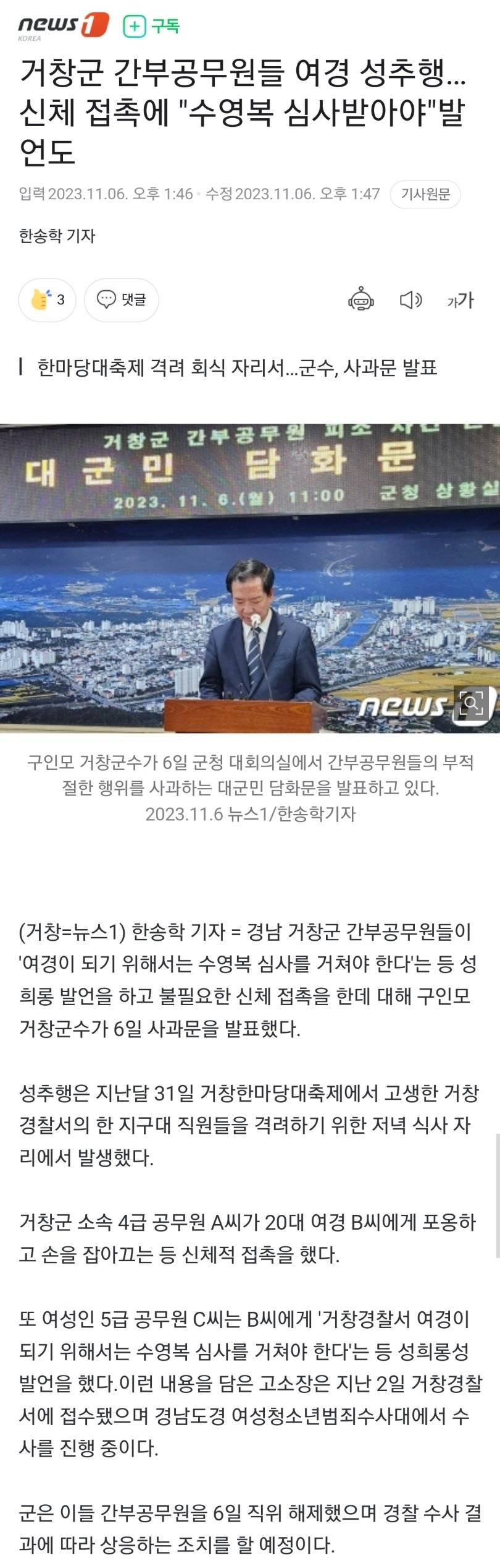 요즘 세상에 성추행과 성희롱성 발언이라...