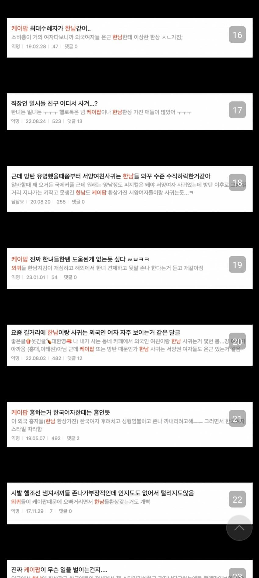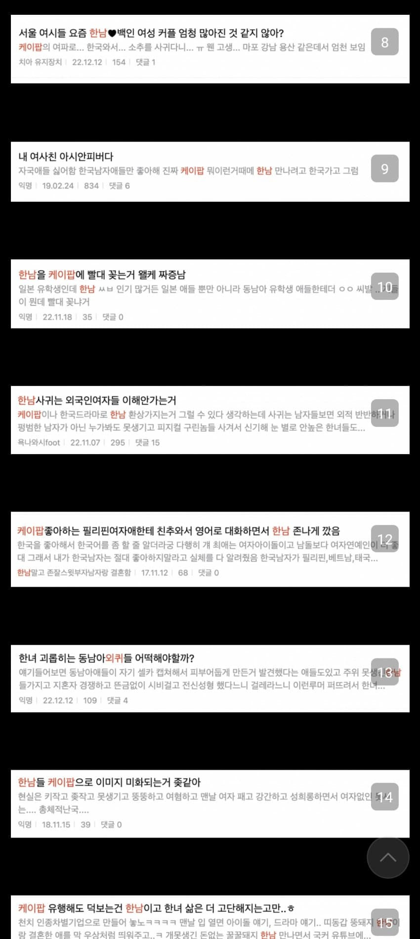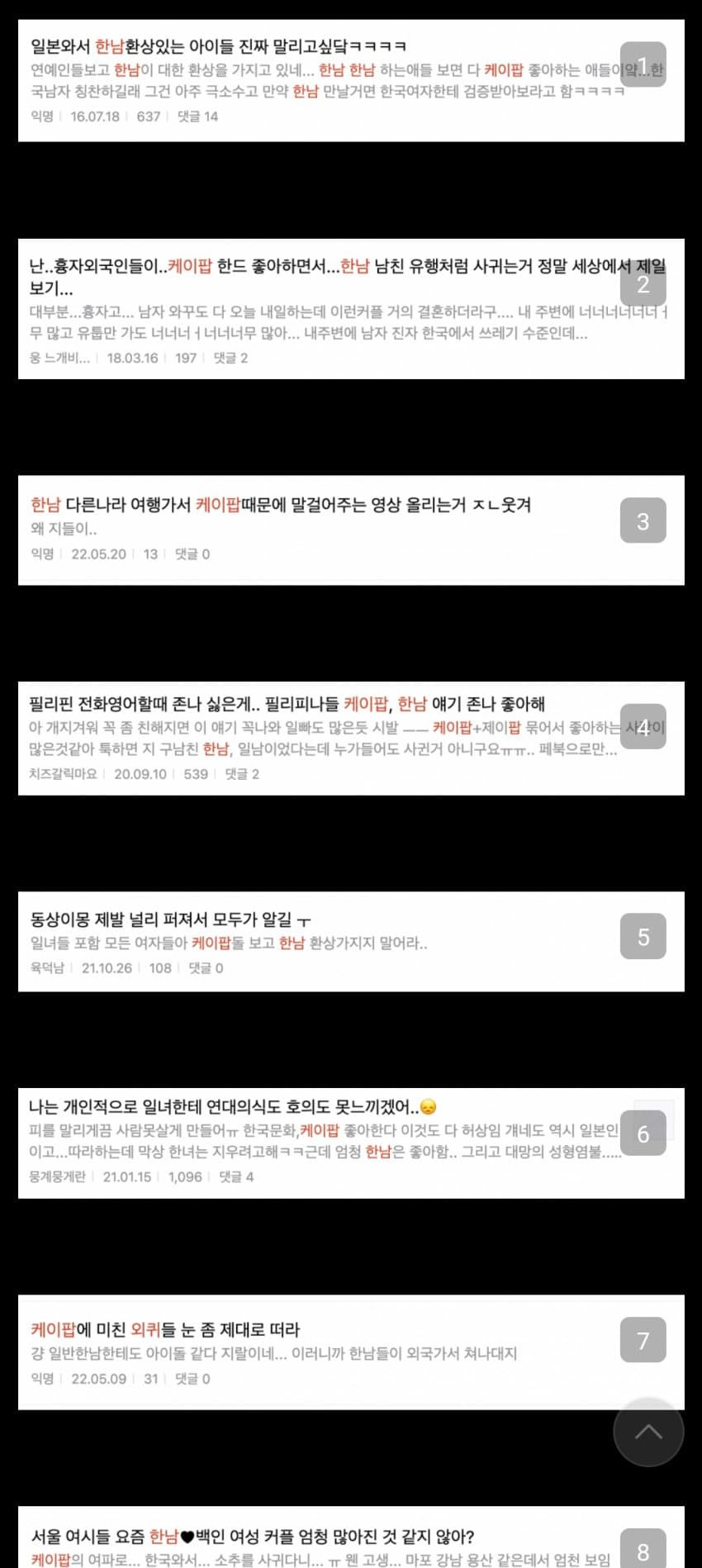 케이팝 유행때문에 한남들 인기가 외국에서 상승중!