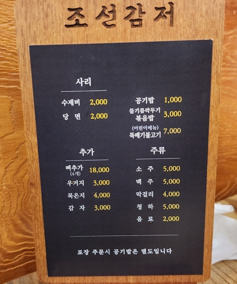 아무튼 날이 쌀쌀해지면서 뜨듯한 국물이 생각나길래 동네에 감자탕 맛있기로 소문난(?) 조선감저에 다녀왔다.