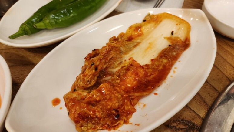 김치와 깍두기는 통으로 나오기에 가위로 적절히 잘라먹어야 한다.