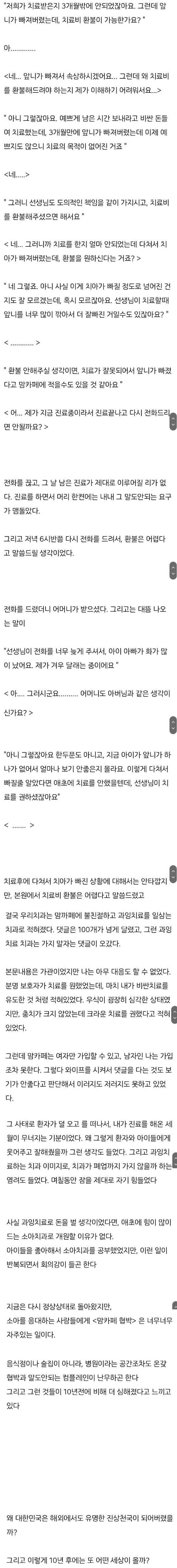 치과 치료받고, 3개월뒤 이가 빠졌다.