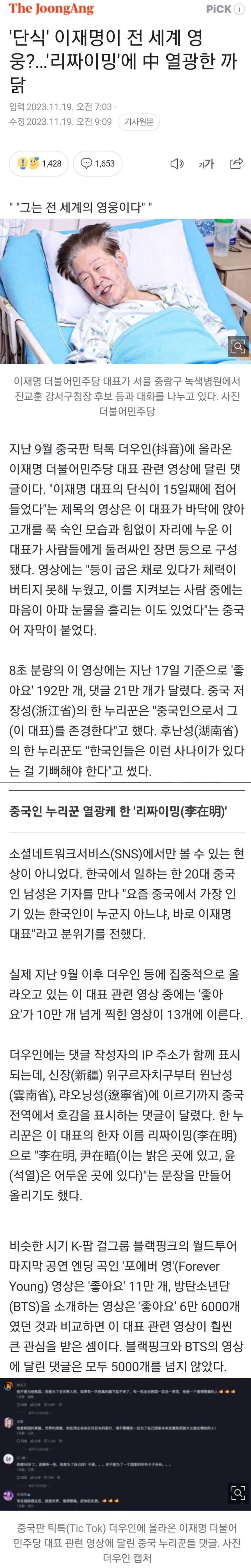근데 언제부터 중국애들이 우리나라 정치상황을 신경썼지?
