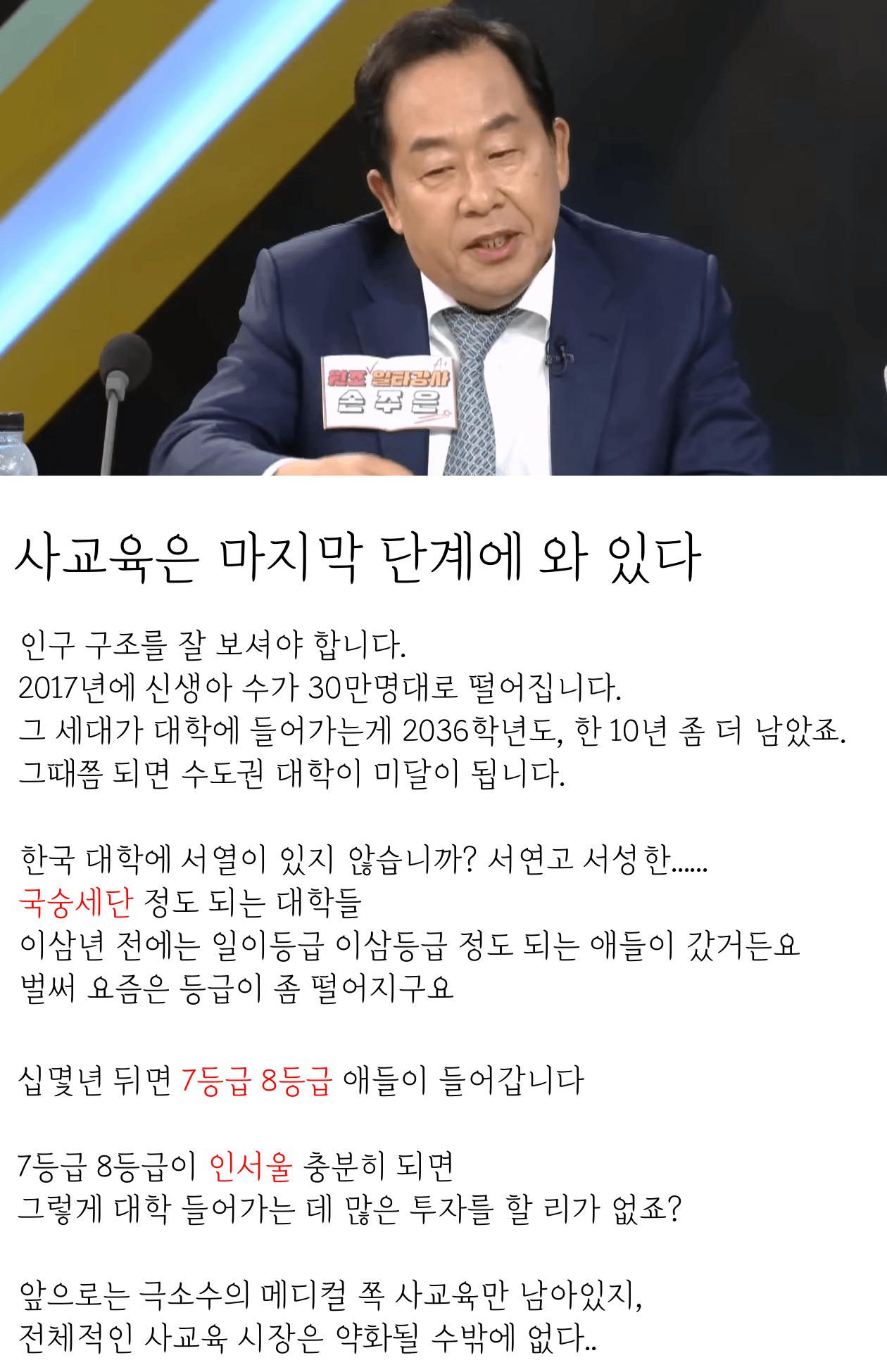 다만 의대같이 최상위권으로 가기위한 사교육만 남아있을것이다.