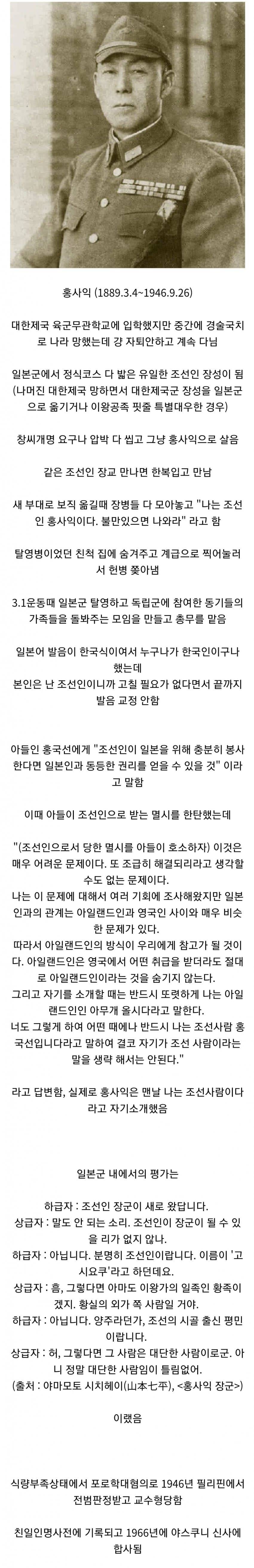 아무리 조선인이라는걸 알려도 일본군 장교였다는것과 전범들이 안치되어있는 야스쿠니 신사에 합사된것때문에 친일인명사전에 기록된걸까?