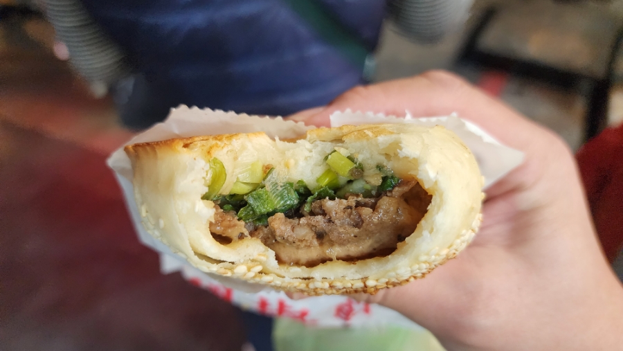 후추빵을 몇 시간 놔둔 다음에 먹었더니 육즙이 빵에 배어들고, 뜨겁지도 않아 먹기 더 좋았다.