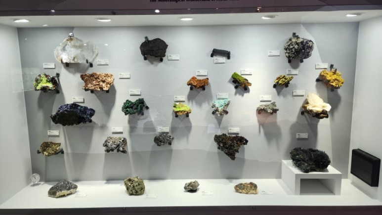 2층에는 여러 광물들이 전시되어 있다.