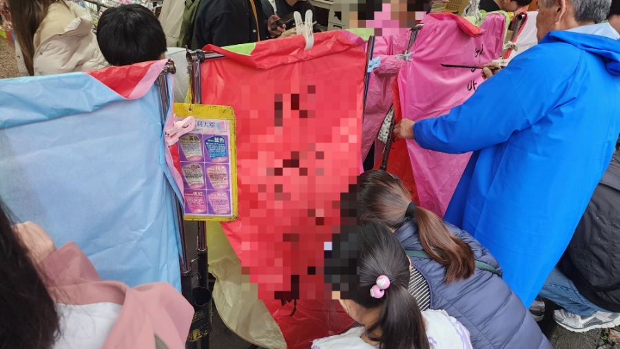 가계에 들어가서 천등을 구매하면 가계 앞에 천등을 걸어두고 소원을 적으라고 한다.