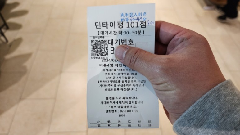 일단 입구 옆에 대기를 걸면 번호가 적힌 쪽지를 준다.