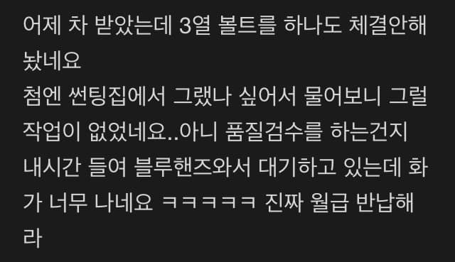현기차... 차는 좋은데 조립하는 놈들이 수준 미달이다 아주.