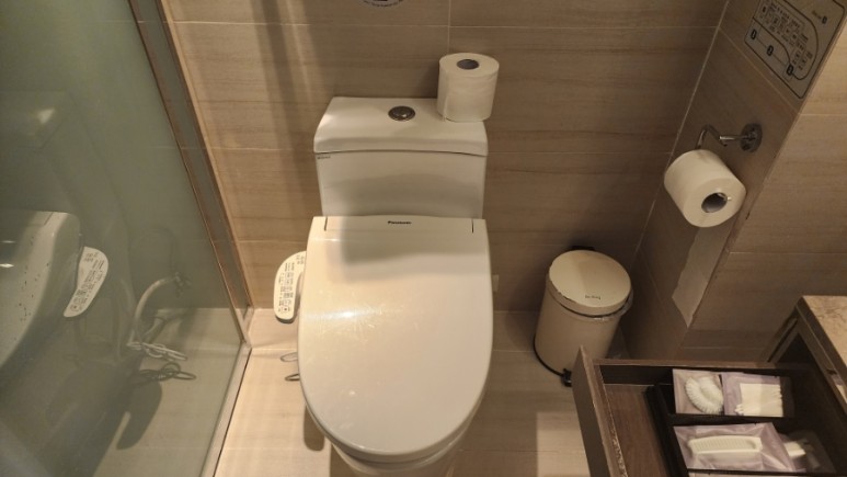 샤워기 옆엔 샴푸와 바디워시가 담긴 통이 있어 그걸 사용해서 씻으면 된다.