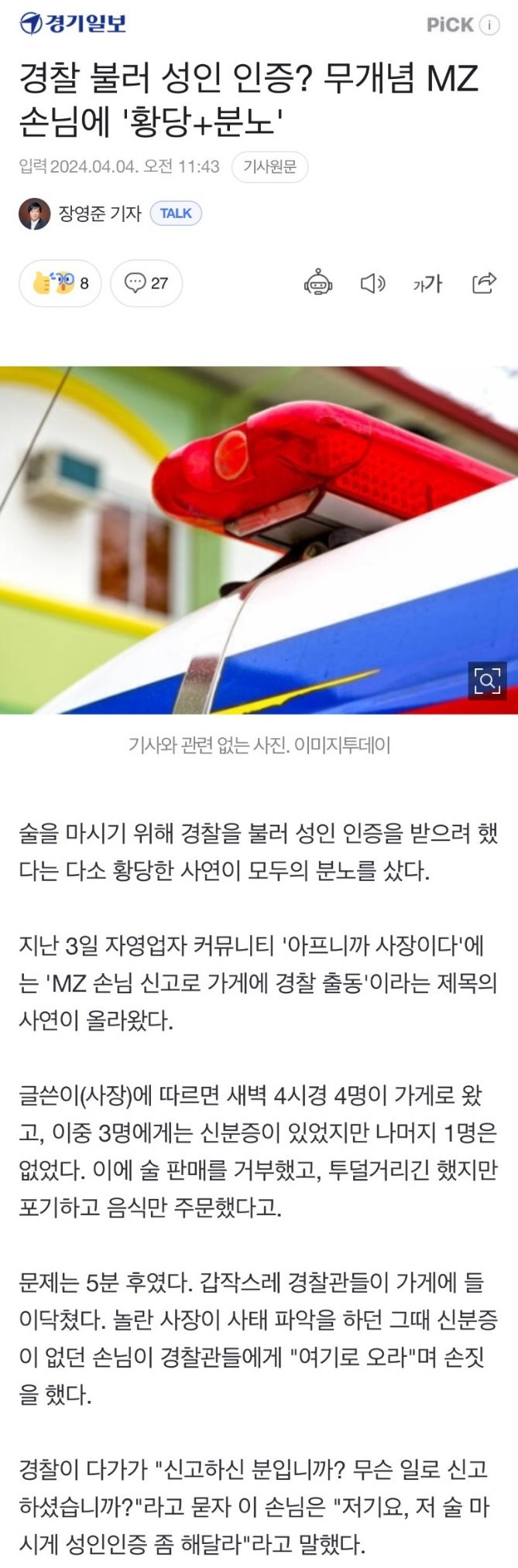 경찰불러서 신원 확인해서 성인인증을 하겠다고?