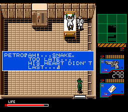 길고 긴 길을 돌아 다시 페트로비치 박사와 마르프 박사의 시체(!!)가 있는 곳으로 돌아온 스네이크는 나타샤의 브로치(지금은 열쇠지만...)를 이용해 캐비닛 문을 열고 들어간다.