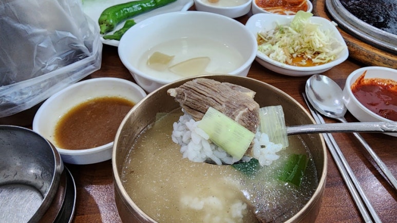 갈비탕은 놋쇠 그릇에 나온다.