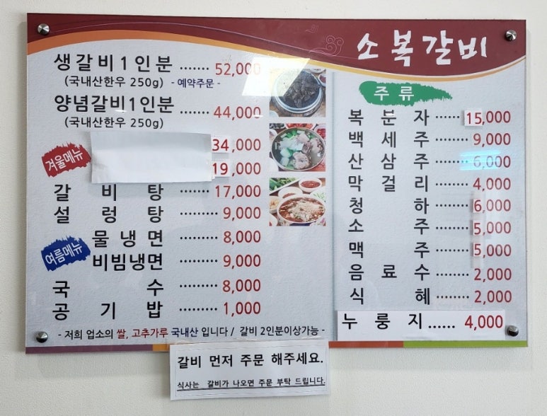 주의해야 할 점으로는 생갈비는 예약을 해야만 맛볼 수 있다는 것!