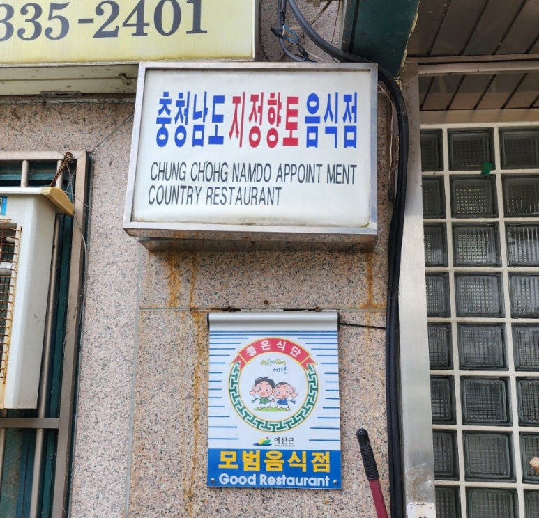 충청남도에서 인증한 향토 음식점 간판이 달려있다.