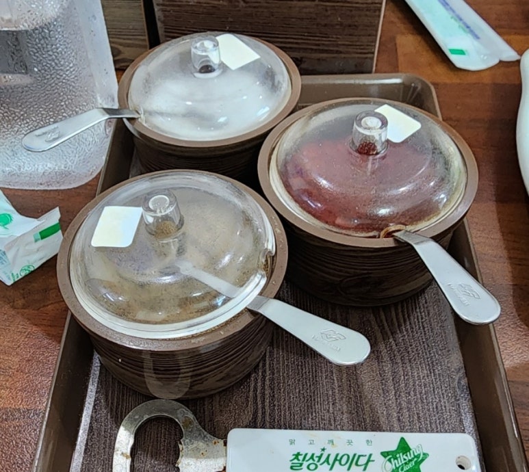 뭐... 간을 좀 하려면 식탁 가운데 있는 양념통을 이용하자.