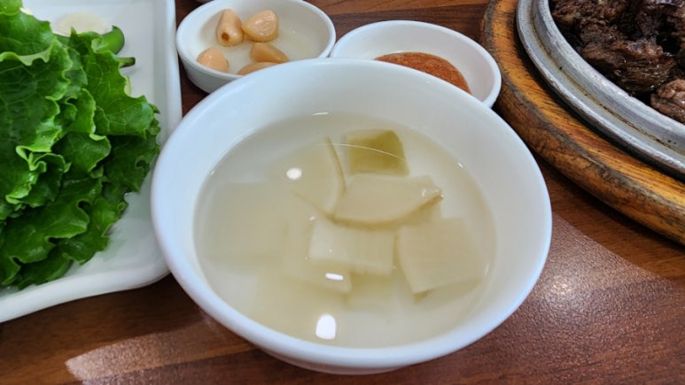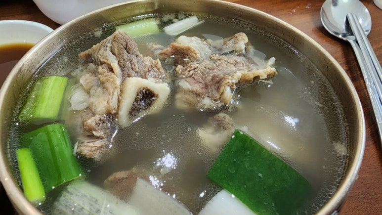 맑은 국물과 큼직한 갈비, 크게 썬 파까지...