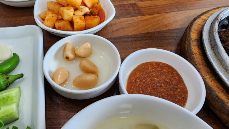 갈비를 먹으면서 함께 곁들여 먹으면 좋을 반찬들이다.