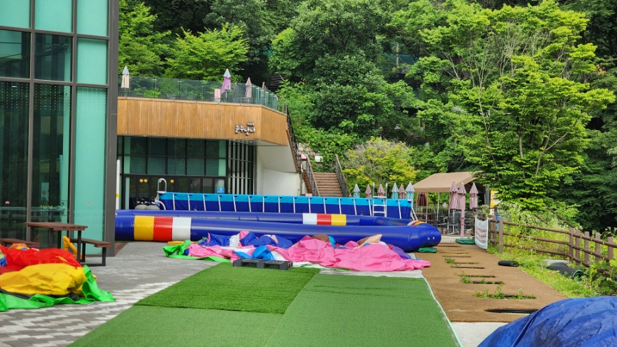 외부엔 물놀이장이 있는데, 아직 준비가 덜 된 거 같다.