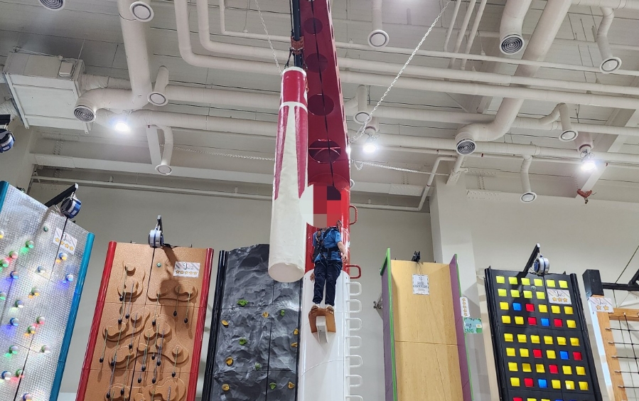 그리고 그 옆에는 초록색 기둥을 올라가는 체험기구가 있다.