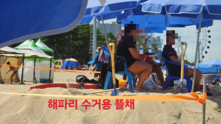 뉴스에도 나왔다시피 해수욕장에 해파리 방지 그물망을 설치해서 해파리가 해수욕장에 들어오지 못한 것이다.