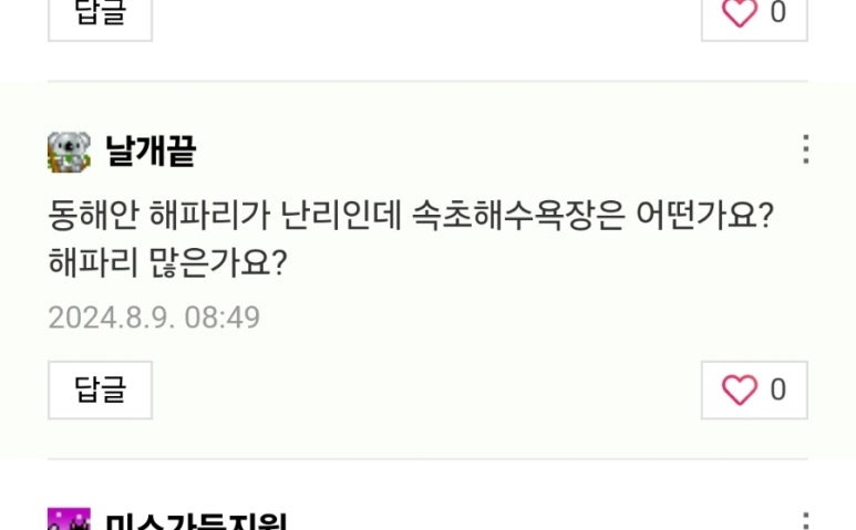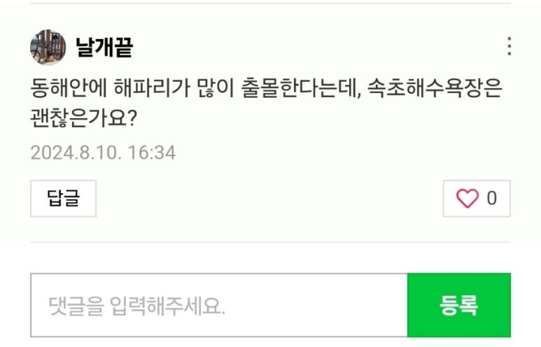 나도 해수욕이 정말 가능한지 궁금해서 속초해수욕장 관련 블로그를 쓴 사람들에게 해파리 어떻냐고 물어봤는데...