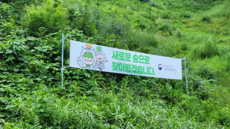 입구를 향해 올라가다 보면 자작나무숲 정비사업을 한다는 플래카드가 걸려있는 걸 볼 수 있다.
