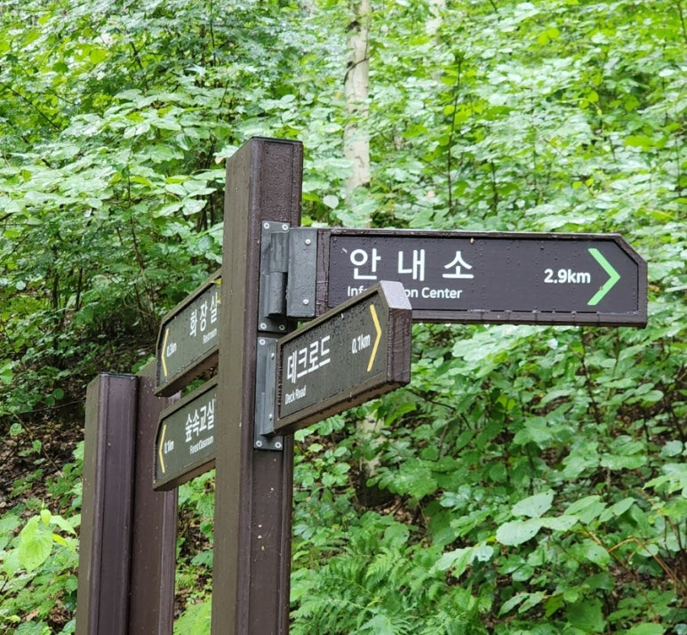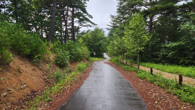 빗속에서 자작나무 숲을 계속 탐방하기엔 무리가 있어 돌아가기로 하고 안내소 방향으로 간다.