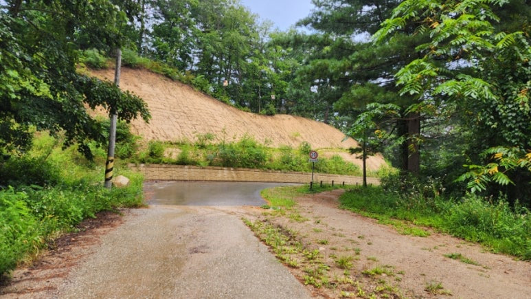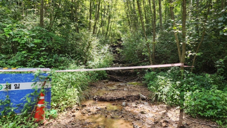 그리고 입구 플래카드에 쓰인 것처럼 숲속으로 들어가는 길은 통제중이다.