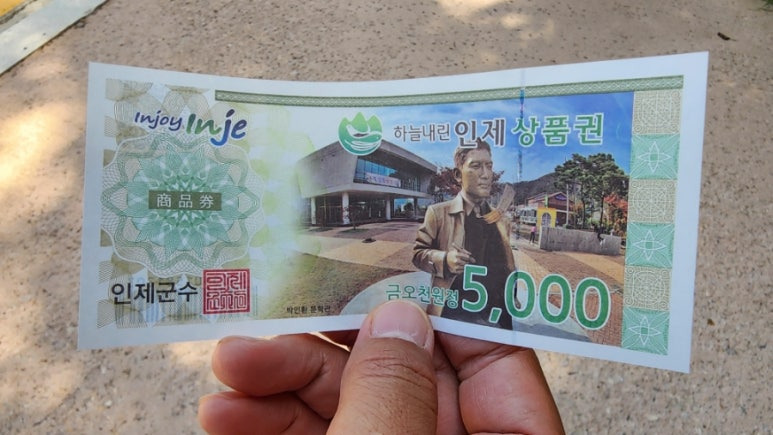 이 상품권으로 앞으로 나올 매점이나, 인제군에서 물건을 사거나 밥을 먹을 때 쓸 수 있다.