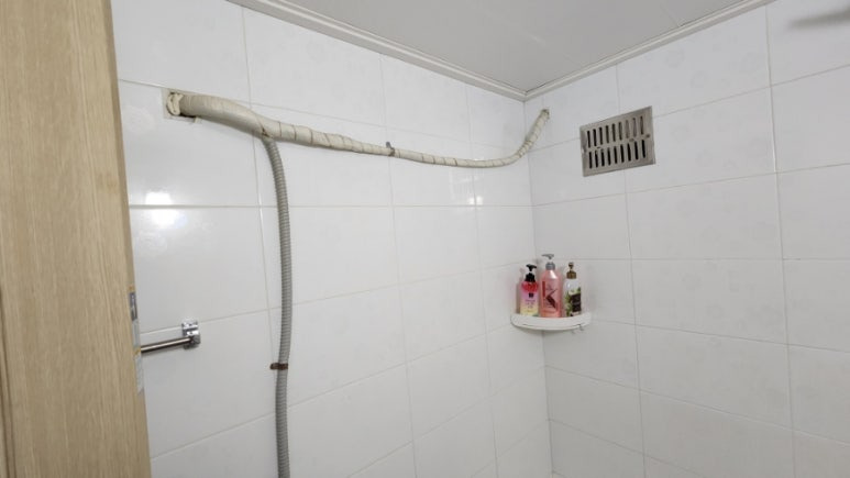 에어컨 배관줄 같은 게 욕실벽에 덜렁~ 걸려있다.