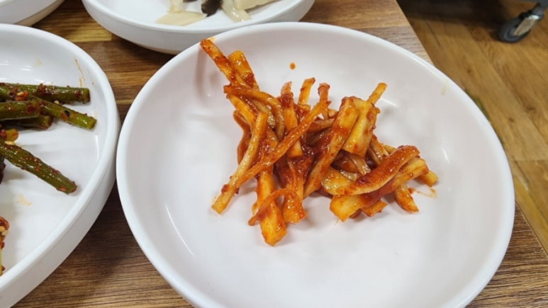 8종류가 나왔는데, 여기서 마늘쫑 무침이 제일 맛있었다.