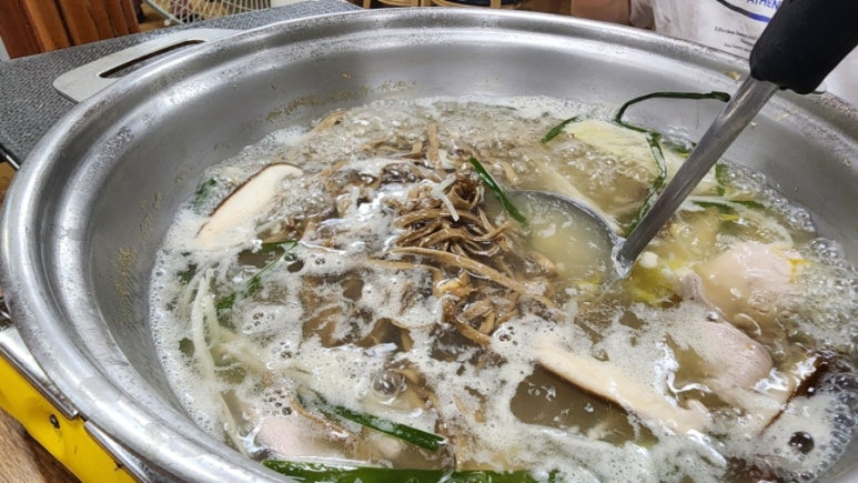 사장님이 20시간인지, 2일인지 꿩고기와 뼈를 넣고 우려낸 육수라고 하셨다.