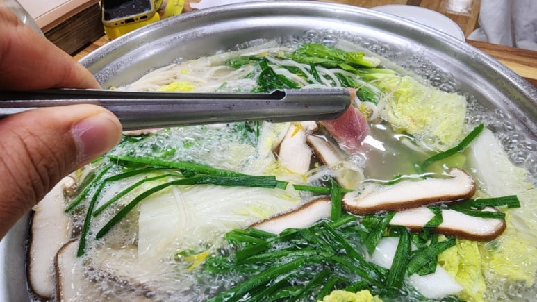 육수가 끓는데 은근한 냄새가 난다.