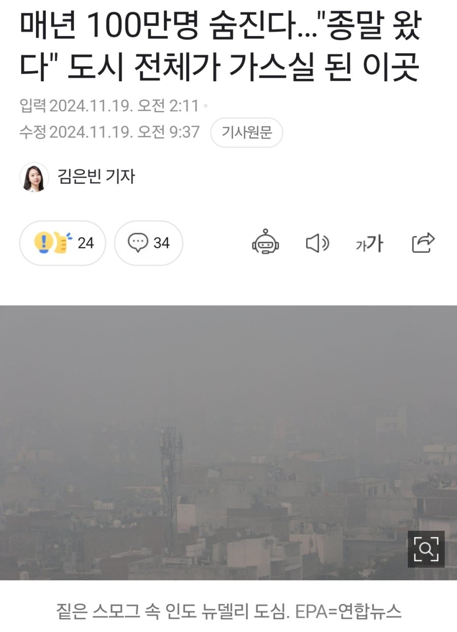 인도 치안(강간, 폭행 등)이 문제가 아니라 대기오염이 문제다.
