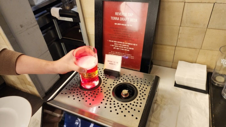여기에 준비된 잔을 꼽으면 알아서 맥주가 차오른다.