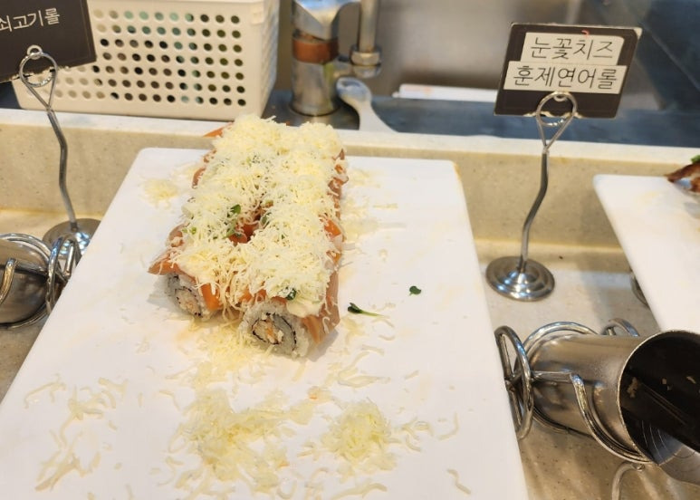 다른 쿠우쿠우에는 치즈 초밥이 있다.