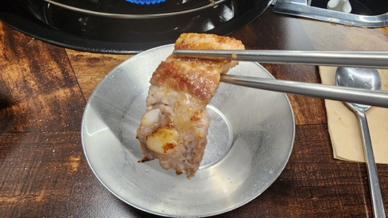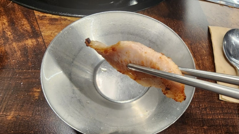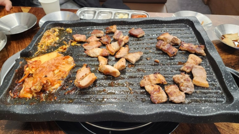 맛있게 먹다 보니 어느덧 고기를 절반 이상 먹었다.