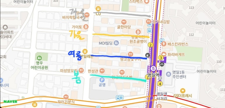 4개의 골목을 각각 봄길, 여름길, 가을길, 겨울길로 지정해놨다.