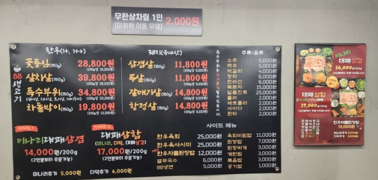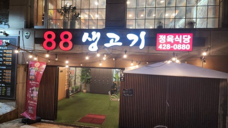 이 중에 봄길 끄트머리에 정육 식당인 88생고기가 있다.