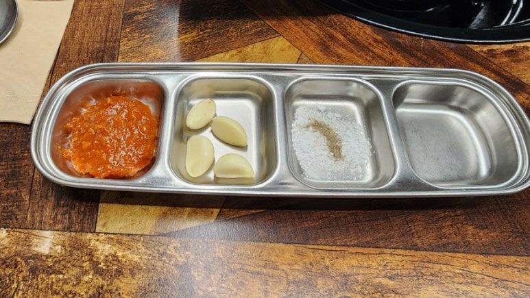 이 밑반찬들은 고기의 맛을 북돋아 주기 위한 조연들이다.