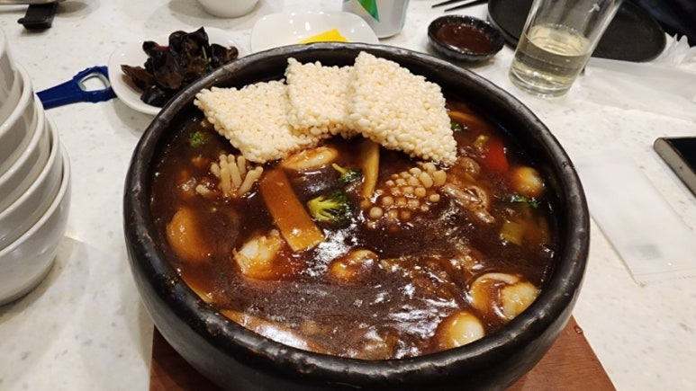 걸쭉한 국물과 바삭한 누룽지, 해물과 소고기의 만남!