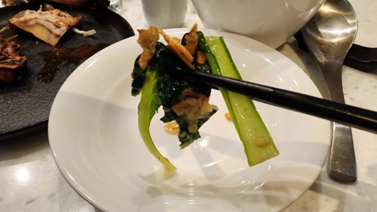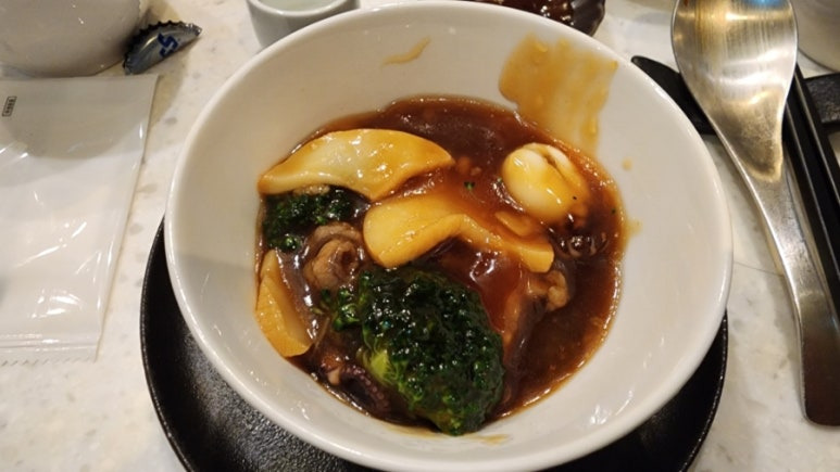 맛은 마늘 후레이크의 고소함과 채소가 아삭하게 씹히는 식감이 굴 소스 등과 어우러져 입안에서 맴도는 맛이다.