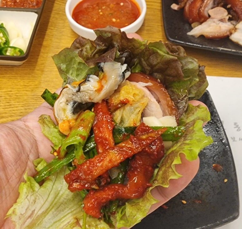 자~ 그럼 사장님이 알려준 대로 한 쌈 싸보자.