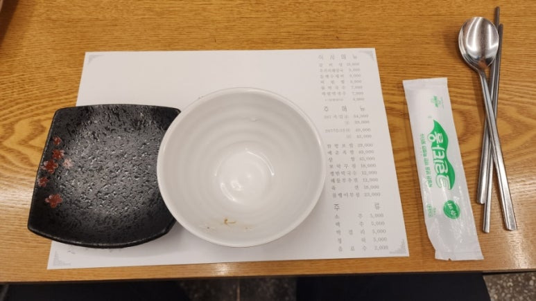 식탁 받침 종이에 메뉴와 가격이 있지만, 잘 안 보이는 관계로...