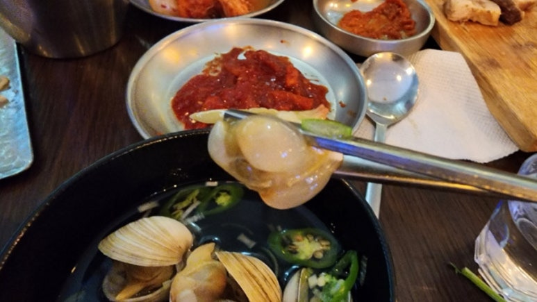 바지락의 쫄깃함과 홍합의 부드러움과는 차원이 다르다.