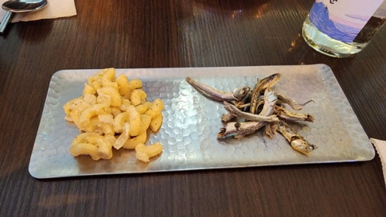 마른 멸치에 술은...