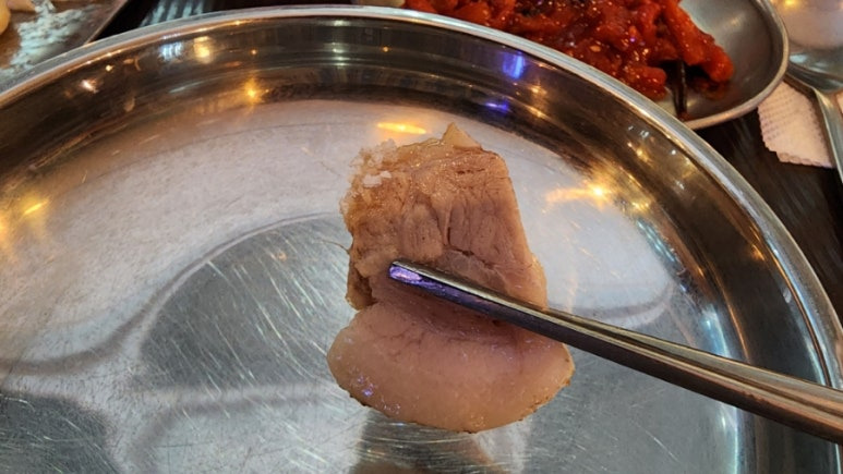 일반 수육과 달리 부드러우면서도 씹히는 질감이 좋다.